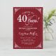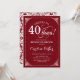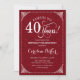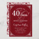 40:e födelsedagsinbjudan. Elegantens vintage är röd och vit med fuktmönster. Teckensnitt för funktionsskript. Skål till 40 år! Kan vara personlig i vilken ålder som helst! Berätta om du behöver anpassa dig ytterligare.