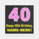 Den här roligten och den glatta pappra napkin-designen med födelsetecknet har ett stort nummer "40" med en ljus rosa och mörk rosa, mönster som innehåller hjärtformer. Det innehåller också hälsning:s födelsedagsmeddelande "Lycklig 40:e födelsedag" och personlig namn. Pappra servetter som denna kan vara trevliga att ha på ett party som hålls för att fira någons 40-årsdag. Det kan också vara en roligt för någon som fyller en födelsedag som infaller den 14 februari (Alla hjärtans dag) på grund av dess kärleksfulla hjärtsymboler och färg. [~Z0000436]