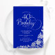 Enkel inbjudan till 40-dagars festfest i royal Blue och silver. Klassdesign med ro, faux silver-folie och typsnitt för typsnitt. Trendig inbjudan-kortets perfekt för en snyggt kvinnlig dag firande. Anpassa med dina egna detaljer. Kan anpassas till vilken ålder som helst. Skrivna Zazzle-inbjudningar eller digital utskrivbar mall för omedelbar nedladdning.