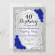 40:e födelsedagsinbjudan. Utformning av blommigten i silver och royal i blått. Funktioner faux glitter silver rand, sapphire ro snyggt script och confietti. Perfekt för en glam-födelsedagsfest.