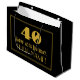 Det här 1920-talet-1930-talet har inspirerat till vintagens födelsedagskalematerade presentsäcksdesign med ett stort konsthugg som ser inspirerat nummer "40", Lycklig 40:e födelsedag, ett anpassade namn och ett gräns mönster som består av tunt linjer. Bakgrunden är svart på färgad. En presentpåse som denna kan användas när man slår in presenter som ges till någon i firande på deras fyrtioårsdag. [~Z0000501]