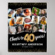Elegantens 40-årsdag poster party med en svart bakgrund i snyggten som kan ändras till vilken färg som helst, en 15-fotokollage genom åren, talesättet "jublar till 40 år", guld glitter kant, deras namn och datumet för firande.