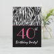 40:e födelsedagen i Zebra ränder Black White med R Inbjudningar