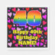 Denna glatta och roliga födelsedag med den pappra napkindesignen har ett stort nummer "40" med en regnbågsspektrumövertoning som inspirerade mönster, tillsammans med meddelandet "40:e födelsedagen i Lycklig" och ett eget namn. Bakgrunden har en mönster av hjärtformer med färg som rosa, lila och rött. Lovande, vänskapliga pappra blöjor som denna kan vara roligt att hålla en födelsedagskalender/party i firande på någons fyrtioårsdag. [~Z0000550]