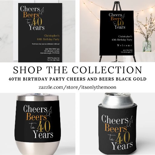 40th Birthday Party Cheers and Beers Black GoldDesignad av Only The Moon