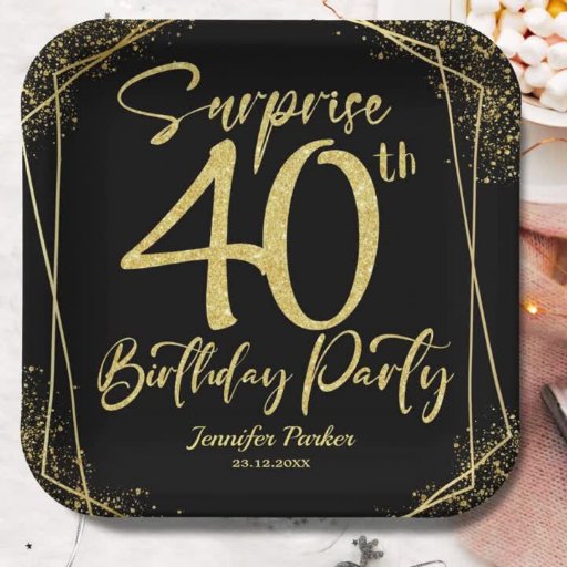 Kasta ett bländande firande med vår "40:e födelsedag Party Black Guld Glitter!" Perfekt för en glamorös och oförglömlig händelse. Köp nu och gör gnistran till en överraskning! ✨ 🎉 Observera: Effekten guld glitter simuleras, ingen riktig glitter används