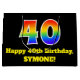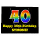 Denna pulserande och färgstarka presentsäck med födelsedagstext har ett stort nummer "40" med en regnbågsspektrumövertoning som inspirerar mönster. Det innehåller också meddelandet "40-årsdagen för Lycklig" och ett eget namn. Den har också en bakgrund med svart färgad. En dylik presentsäck på födelsedagen kan vara ett roligt sätt att slå ihop en gåva eller present som ges till någon som firar sin fyrtioårsdag. [~Z0000521]