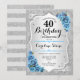 40:e födelsedagsinbjudan. Utformning av blommigten i silver och isig blå. Funktioner faux glitter silver rand, turquise ro snyggt script font och konetti. Perfekt för en glam-födelsedagsfest.