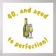 En rolig födelsedagspresent för manar, med en bild av vin flaska och två glas som säger "Åldras till perfektion!".
