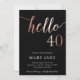 Det här 40:e födelsedagsinbjudandet är en perfekt till vänner och familj i inbjudan till party! Det här kortet innehåller en faux kopparfolie hej 40. Kortets baksida har en falsk folie av koppar som kan behållas eller tas bort. Den här moderna designen är en perfekt för en man- eller kvinnlig födelsedagsfirande.