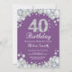 40:e födelsedagsinbjudan Lila och Silver Diamond Inbjudningar