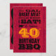 En roligt som älskar land i party väntar på att få denna födelsedagsinbjudan. Fyrtio år och att man måste fira med underbarare kött kall öl och bra. Det här är BBQ-kortet. Ut ur grillen och föda boll y'alla!