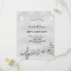 Ett trendig, ett modernt 40-dagars inbjudningskort för fest. En faux silver-tittar bakgrund, med musik noter, svart färgad brev.Dekorerad med faux glitter damm. Anpassa och lägg till information om namn och party. Bakåt: silver, vykortsdesign. Tips! Om du inte vill att det ska se ut som ett vykort klickar du på anpassa, går till baksidan och tar bort delaren och lägger till frimärke.
