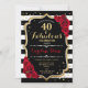 40:e födelsedagsinbjudan Elegant svartvit design med faux glitter. Svartvit rand med röd ros. Perfekt för ett elegant födelsedagsfest.