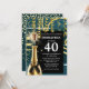 Ett modernt faux guld på mörk tealblått mönster med ett faux guld av mousserande vin med ett exploderande kork; mousserande guld glitter och flaska hängströmmar bredvid vita textmallar på svart som har stora siffror på det för födelsedagspresent. Dessa är idealiska för alla 40-årsjubileum eller alla firande som fyller år och företag. Anpassa ordalydelsen till kostym för ditt evenemang.