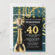 Ett modernt faux guld på mörk teal blue-design med en faux guld flaska från mousserande vin med exploderande kork. Med mousserande guld glitter och lodrät hängströmmar bredvid vita textmallar på svart som har ett stort fyrtiotal i guld på den. De här är idealiska för hela 40-årsdagen och affärsdagen firande. Anpassa ordalydelsen till kostym för ditt evenemang.