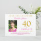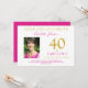 40 och Fabulous Photo Modern 40-årsdag rosa Inbjudningar