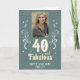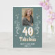 40 och fantastisk Elegant lövsättning Foto 40-årsdagskort. 40 och fantastisk text i modern vit skrift med ett namn och vit lövsättning. Anpassa det med ditt foto, ditt namn och åldern. Lägg till din text i kortet eller radera den.