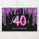 För en modern, trendig och glamorös 40-årsdag party. En svart bakgrund av klassisk elegant som dekoreras med mörk lila färgad faux glitter drops, färgdroppstift. Med texten: 40 och Fabulous. Anpassa och lägg till ett namn. Lila färgad text. Ord Fabulous är skriven med ett modernt handskript i stil. Nummer 40 skrivs med ett stil-teckensnitt med ballong.