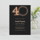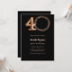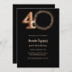 A modern, stylish photo invitation for a 40th birthday party. A black background . Personalize and add your party details. Rose gold text.