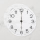 A clock showcasing the start time on a whitewashed wood background, suitable for a 40th birthday party.