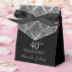 This elegant 40th Birthday Silver Damask Thank You favor box with shimmering silver faux foil, the birthday girl's name in a trendy script font, and tied with an elegant black bow would be perfect for your event. It would be great for a candy station, on a thank you gift table, or at each place setting with a favor. Be sure you order enough for all your guests.