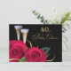 Eleganta röd ros och champagnekoppar planlägger 40th födelsedagfirandeinbjudningar. Skräddarsy namn, datera, och allt specificerar av dina inbjudningar. Matcha kort, portofrimärken och andra produkter som är tillgängliga i födelsedagen/födelsedagsfest inbjudankategorien av vårt lager.
