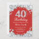 40th Röd födelsedaginbjudan och silverdiamant Inbjudningar