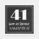 Den här inspirerade 20-årsjubileet och den pappra napkin-designen för vintage-stil har ett stort konsthugge som ser inspirerat nummer "41", meddelandet "Lycklig 41:a födelsedag", ett redigerbart namn och ett gräns-mönster som består av tunt linjer. Roligt, anpassad födelsedagskalender som pappra blöjor av det här slaget kan användas vid någons fyrtioårsfirande. [~Z0000461]