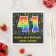 Den här roligten, den levande och färgstarka födelsedagstexten med den pappra napkindesignen har ett stort nummer "41" med en regnbågsspektrumövertoning som inspirerade mönster, tillsammans med meddelandet "Lycklig 41:a födelsedagen" och ett anpassade namn. En del av bakgrunden har ett färglöst musik noter och symbolerna mönster. Roligt, pappra blöjor av personlig som denna kan användas vid en födelsedagsfest som hålls för att fira en musikers, en sångares, en kompositörs eller någon annans fyrtioårsdag. [~Z0000421]