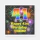 Den här glatta och roligt-födelsedagskalan med den pappra napkin-designen har ett stort nummer "41" med en färgstark regnbågsspektrumövertoning som inspirerat mönster. Det innehåller också budskapet "Lycklig 41:a födelsedag" och en personlig namn. Bakgrunden är ett spännande och färgstarkt mönster som inspirerats av att det ser ut som om det brinner berömda fyrverkerier. Den här typen av färgfulla födelsedagskalender kan användas i en födelsedagsfest till någon som firar sin 40 första födelsedag. [~Z0000574]