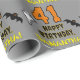 Den här skrämmande och skämtsam Hallowas födelsedag med papper design har ett stort nummer "41", tillsammans med meddelandet "GRATTIS PÅ FÖDELSEDAGEN," och ett anpassade namn. Det finns också bilder av ett spöke och ett fladdermus på framsidan. Att packa pappert som detta kan vara ett roligt sätt att packa presenter eller gåvor som ges till någon vars 40 första födelsedag infaller på Halloween (Oktober 31a). [~Z0000411]