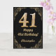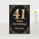 41:a födelsedagen Svarta och Guld Glitter Ram Kort