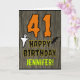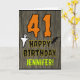 Framsidan på denna läskiga och kusliga Halloween födelsedagstema gruskortsdesign har ett stort nummer "41", tillsammans med meddelandet "GRATTIS PÅ FÖDELSEDAGEN", och ett redigerbart namn. Det finns också avbildningar av en spöke och en fladdermus på framsidan. Insidan har ett redigerbart födelsedagsmeddelande, eller kanske kan rensas och lämnas tomt om ett meddelande ska skrivas för hand istället. Ett personligt födelsedags kort som detta kan vara ett roligt sätt att erkänna någon fyrtioförsta födelsedag som också infaller på Halloween (31 oktober).