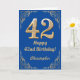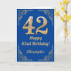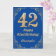 42:a födelsedag Blått och Guld Glitter Ram Kort