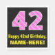 Den glatta och roligt pappra napkin-designen med födelsetal har ett stort nummer "42" med hjärtformer som innehåller mörk rosa och ljus rosa rand mönster. Det innehåller också hälsning:s födelsedagsmeddelande "Lycklig 42:a födelsedagen" och ett anpassade namn. Pappra servetter som denna kan vara roligt till använda vid någons 42:a födelsedagsfest eller firande. Det kan också vara ett val för roligten för någon som fyller år den 14 februari (Alla hjärtans dag), på grund av dess kärleksfulla hjärtsymboler och färg. [~Z0000436]