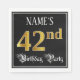 Den här pappra napkin-designen i finare och lyxartiklar med födelsedag har personlig namn och meddelandet "42:a Födelsedagsfesten". Det stora antalet "42nd" har en imitation/faux guld-inspirerad färgning av mönster, och ord "Födelsedagsfest" är i elegant text som heter manuset stil. Bakgrunden är färgadens svarta som standard (även om den kan anpassas). Elegant, opulenta pappra blöjor som denna kan vara användbara vid en födelsedagsfest som hålls för att hedra någons 42-årsdag. [~Z0000565]