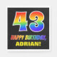 Den här roliga, färgstarka och pappra napkin-designen på roligten har ett stort nummer "43" och meddelandet "GRATTIS PÅ FÖDELSEDAGEN,", båda färgader med en regnbågsspektrumövertoning som inspirerade mönster, tillsammans med en fet gult anpassade-mottagare namn. Bakgrunden är svart på färgad. Roligt, skräddarsydda pappra blöjor som denna kan användas vid en party som hålls för att fira någons fyrtiotredje födelsedag. [~Z0000476]