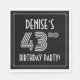 Denna lyxiga och 1920-talets/1930-talets stil inspirerade till fyrtiotredje födelsedagsfirande/party papper napkin-design har en personlig namn, ett finare art deco-utseende inspirerat nummer "43:e", meddelandet "FÖDELSEDAGSFEST!" och ett gräns mönster som består av linjer. Bakgrunden är färgad svart som standard, men kan anpassas till ett annat färg om så önskas. Elegantens födelsedag kan sådana pappra blöjor användas vid en party för att fira någons fyrtiotredje födelsedag. [~Z0000616]