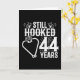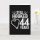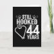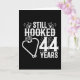 Denna 44-årsjubileum för roligt är perfekt för par som har varit gift i 44 år och som fortfarande sitter fast på varandra och kärlek för att fiska! Underbar för 44-årsdagen för party för att fira 44 års giftermål! Beskrivningen "Fortfarande hookad efter 44 års bröllop-jubileum" citerar med hjärtformade krok fisk och fiskgrafik i en nödsituation i vintage stil.