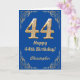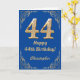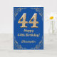 44:e födelsedag Blått och Guld Glitter Ram Kort