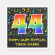 Den här roligten, färglös och pulserande pappra napkindesignen har ett stort nummer "44" med en regnbågsspektralgradient som inspirerade mönster, tillsammans med meddelandet "44:e födelsedagen i Lycklig" och ett anpassade namn. En del av bakgrunden är ett mönster med olika musik noter och symboler med olika färg och storlekar. Roligt, personligens födelsedag sådana pappra blöjor kan användas på en musikers, en sångares, en kompositörs eller någon annans fyrtiofjärde födelsedag. [~Z0000421]