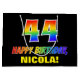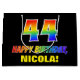 Den här roliga, färgstarka och roligt-födelsematade presentsäcksdesignen har ett stort nummer "44" och budskapet "GRATTIS PÅ FÖDELSEDAGEN", som båda har en regnbågsspektrumövertoning som inspirerar till mönster-färgning, tillsammans med en fet gult anpassningsbar mottagare namn. Bakgrunden är svart på färgad. En roligt presentsäck som denna kan användas när man fyller i en födelsedagspresent eller gåva till någon som firar sin 44-årsdag. [~Z0000477]