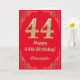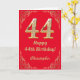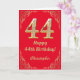 44:e födelsedag Röda och Guld Glitter Ram Kort