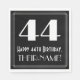 Denna 20-talsmagasin inspirerad och vintagens utseende papper napkin-design har en stor konst deco stil inspirerat nummer "44", meddelandet "44:e födelsedagen i Lycklig", ett anpassade namn och en gräns mönster som består av tunn linjer. På födelsedagen kan pappra blöjor som denna användas vid ett party som firar någons fyrtiofjärde födelsedag. [~Z0000461]