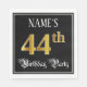 Den här eleganten och finare-födelsedagen kallas papper napkin-design för ett redigerbart namn och meddelandet "44:e Födelsedagsfesten". Det stora talet "44th" har faux/imitation guld-inspirerad färg mönster, ord "Födelsedagsfest" är i opulent text som heter stil och bakgrunden är färgad svart som standard (även om den kan anpassas). Ornata, opulenta pappra blöjor som denna kan användas vid en födelsedagskalender som hålls för att hedra någons fyrtiofjärde födelsedag. [~Z0000565]