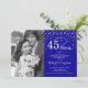 45-års bröllopsdags inbjudan med foto. Elegant design i silver och safirblått med skrivstil och konfetti. Kan anpassas för alla år av äktenskap. Skål för 45 år!