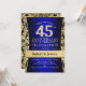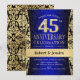 Inbjudan till 45-års bröllopsdag i safirblått, svart och guld.