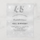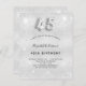 En modern, stilren och glamourös inbjudan till en 45-årsfest. En falsk silverfärgad bakgrund, dekorerad med glitterdamm. Personifiera och lägg till ditt namn och festdetaljer. Nummer 45 är skrivet med en ballongstil font, script.