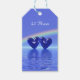 Ge märkre med min design av två safira blåhjärtan flytande på vatten under en regnbåge. Texten säger "45 år" på framsidan och "Till, Från" på baksidan.